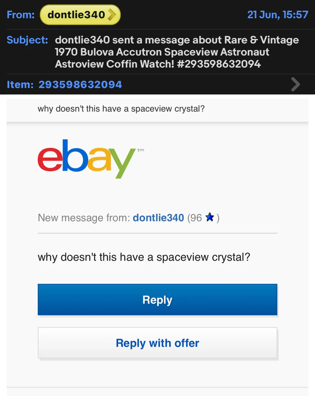It's listed as "Rare & Vintage 1970 Bulova Accutron Spaceview Astronaut Astroview Coffin Watch!"